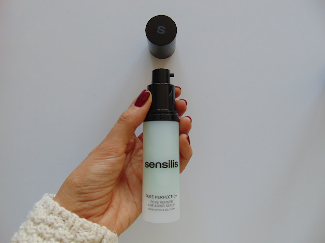 Let me introduce you to the Pure Perfection Pore Refiner Antiaging Serum. Its job is to balance and mattify oily to combination skins. What I really love about Sensilis products is knowing they don't have parabens, mineral oils or animal based ingredients. This one in particular has an exfoliating action thanks to Salicylic Acid, is constituted by Retinol-Like which provides an antiaging action and Zincidone and Laricyl which control sebum and reduce the size of pores. Complicated and unknown names for most of us, but they actually became my best friends!